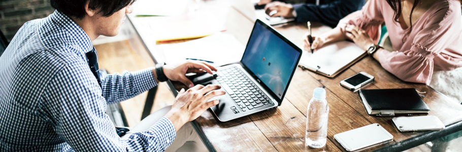 お客さまの業務内容を分析する上流工程からプログラムの開発、必要なハードウェア・ソフトウェアの導入、保守・運用まで、一貫したサービスを提供します。